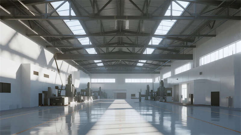 本設(shè)計(jì)以現(xiàn)代簡約語言重構(gòu)廠房美學(xué)。設(shè)計(jì)摒棄冗余裝飾,聚焦材料本質(zhì)——銀灰金屬立面與通透玻璃幕墻形成虛實(shí)對比,利落線條切割出幾何體塊,在光影流動中彰顯力量感。廠區(qū)布局強(qiáng)調(diào)功能與自然的共生:屋頂光伏板陣列呼應(yīng)綠色生產(chǎn)理念,嵌入式空中花園與竹林連廊為鋼鐵空間注入呼吸感,員工休憩區(qū)模糊了工業(yè)與生活的邊界。