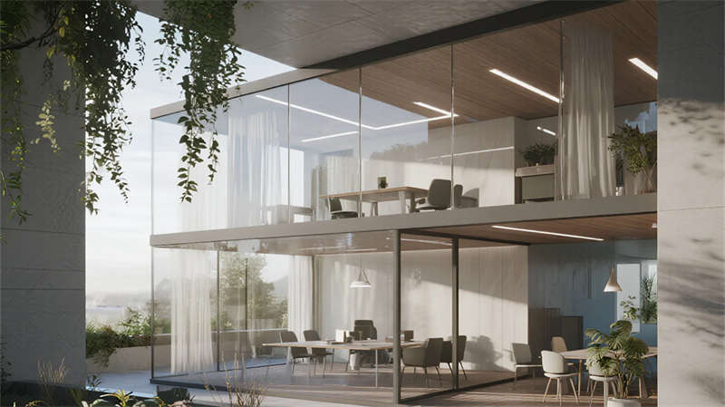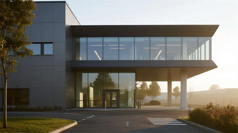 建筑內(nèi)部延續(xù)外部的純凈氣質(zhì),挑高車間利用天窗引入自然光源,無柱空間適配柔性生產(chǎn)線;辦公區(qū)采用模塊化玻璃盒子,內(nèi)外視野交融,營造開放協(xié)作氛圍。夜幕降臨時,線性燈光勾勒建筑輪廓,宛若大地上的發(fā)光雕塑,傳遞理性與溫度并存的工業(yè)美學(xué)。項(xiàng)目以蚌埠地域文化為靈感,用現(xiàn)代設(shè)計(jì)語言書寫工業(yè)建筑新范式,成為兼具高效生產(chǎn)與人文關(guān)懷的可持續(xù)典范。