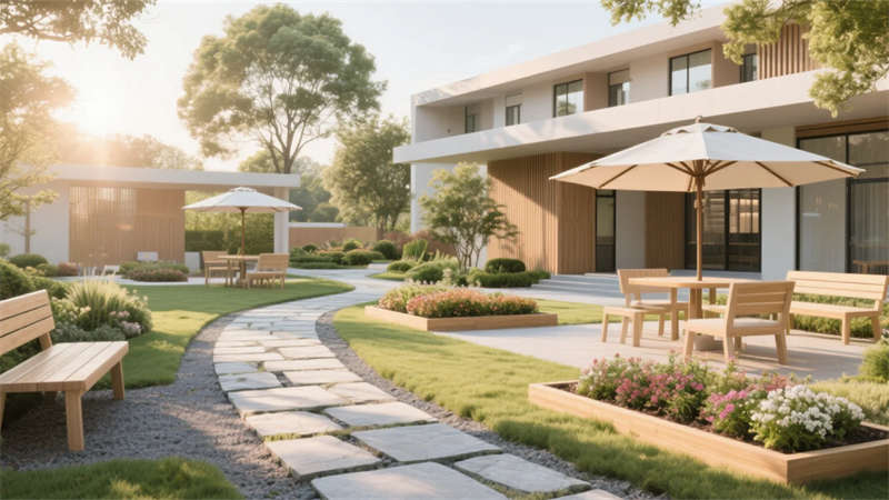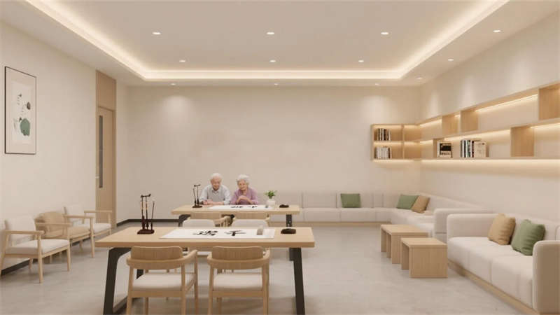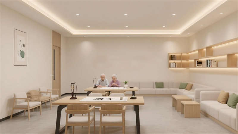 這套老年康養(yǎng)中心設(shè)計(jì)以現(xiàn)代簡約風(fēng)格為核心,營造一個(gè)溫馨、安全且充滿活力的生活空間。設(shè)計(jì)強(qiáng)調(diào)自然光與柔和色彩的融合,入口大廳以開闊布局和藝術(shù)元素傳遞家的溫暖,休息區(qū)則通過舒適沙發(fā)和綠植打造社交港灣。餐廳和活動(dòng)室注重功能性,淺色調(diào)家具與靈活布局鼓勵(lì)日?;?dòng),促進(jìn)社區(qū)歸屬感。居住單元采用圓角細(xì)節(jié)和私密氛圍,確保舒適休憩??祻?fù)訓(xùn)練區(qū)融入防滑設(shè)計(jì)和自然光,支持健康活動(dòng)。戶外庭院成為心靈綠洲,石板步道與花壇提供寧靜放松。多功能廳則適應(yīng)多樣需求,增強(qiáng)空間活力。整體設(shè)計(jì)以適老化理念貫穿,避免繁雜裝飾,突出簡約美學(xué)與人性關(guān)懷,讓每位長者感受到尊重與陪伴,在簡約中體驗(yàn)生活的美好。